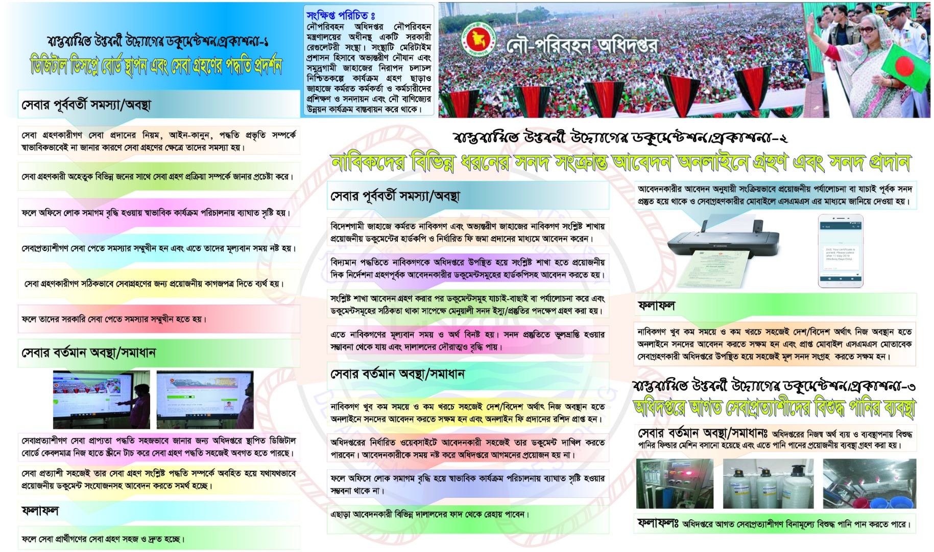 | [১.১.১] সিটিজেন চার্টারভূক্ত “সুকানী, গ্রিজার এবং স্পিডবোট চালকদের সনদ ভেরিফিকেশন, সংরক্ষণ ও প্রিন্ট” সেবাটি সহজিকরণ/ডিজিটাইজেশনের মাধ্যমে বাস্থবায়নের প্রসেস ম্যাপ ও টিসিভি বিশ্লেষণসহ এ সংক্রান্ত সেবা চালুর অফিস আদেশ | দেখুন |